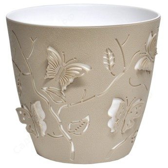 Кашпо пластиковое Бабочки классик 2,5л с вкладышем (беж) Артикул: 33944